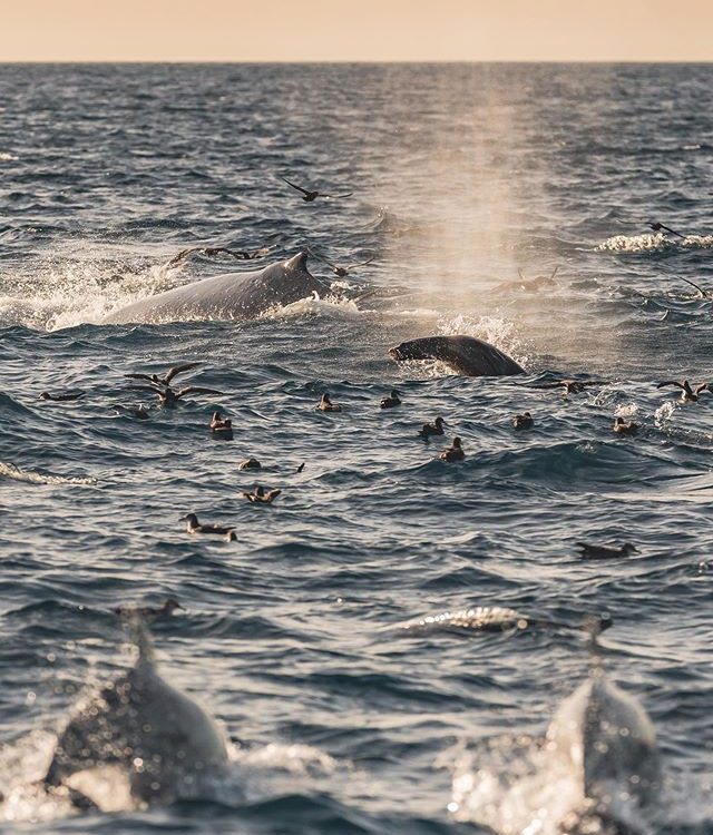 How many species can you spot in the first photo? We were gifted with one of the ocean’s most breathtaking events this afternoon: a feeding frenzy! At least three humpback whales, hundreds of common dolphins, shearwaters and sea lions feasted on giant clouds of anchovy near the surface, much to the delight of passengers and crew alike! Photos by @chelseamayerphotography ••••••••#discoverocean #whales #whalewatching #teamcanon #dolphins #dolphin #oceanlife #createcommune #newportbeach #watchthisinstagood #yourshotphotographer #ig_color #roamtheplanet #artofvisuals